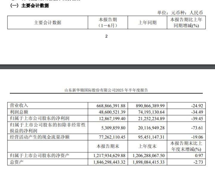 资金占用问题曝光的同时,新华锦上半年的业绩表现也不尽如人意。今年上半年,公司实现营收约6.69亿元,同比下滑24.92%;归属于上市公司股东的净利润约1286.72万元,同比下滑39.45%;扣非净利润仅约530.99万元,同比大幅下滑73.61%。此外配资吧,公司的会计工作负责人及会计机构负责人未签署保证半年度报告真实、准确、完整的书面确认意见。